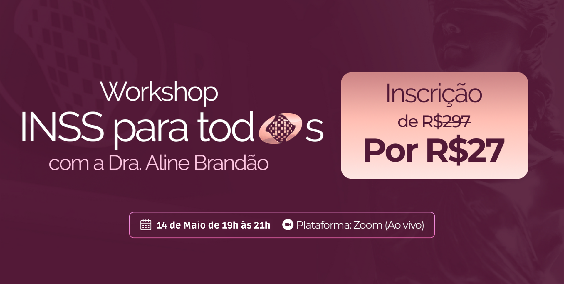 O workshop acontecerá no dia 14, das 19h às 21h, totalmente online e ao vivo. Serão 2 horas de conteúdo direto ao ponto, com foco em te mostrar como começar ou crescer no Direito Previdenciário de forma estratégica e rentável.